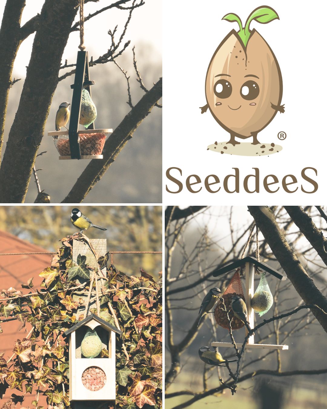 Nieuw in het assortiment van SeeddeeS®, vogelvoerhuisjes! Een klein huisje maar groot geluk in je tuin. Het brengt leven, kleur en gezelligheid in je tuin. Op deze manier help je daarnaast vogels de winter door. Of je nou in de stad woont of buitenaf, een vogelhuisje past (bijna) overal.