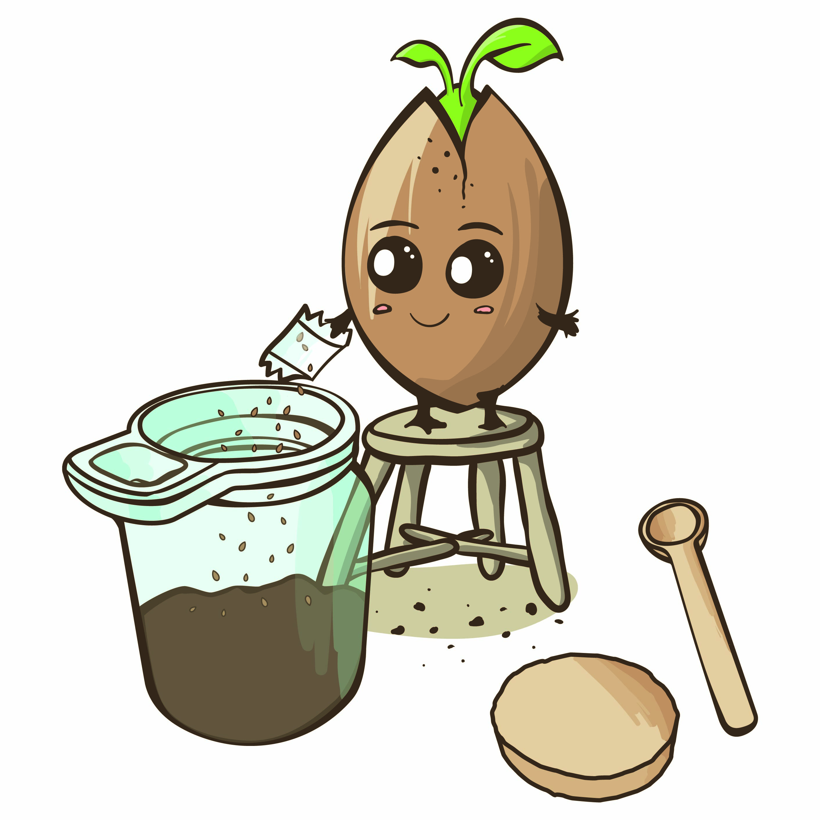 Maak het zaadzakje open en haal er wat zaadjes uit, verspreid deze op de aarde en dek ze een klein beetje af. Hiervoor zou je het bijgevoegde lepeltje kunnen gebruiken.