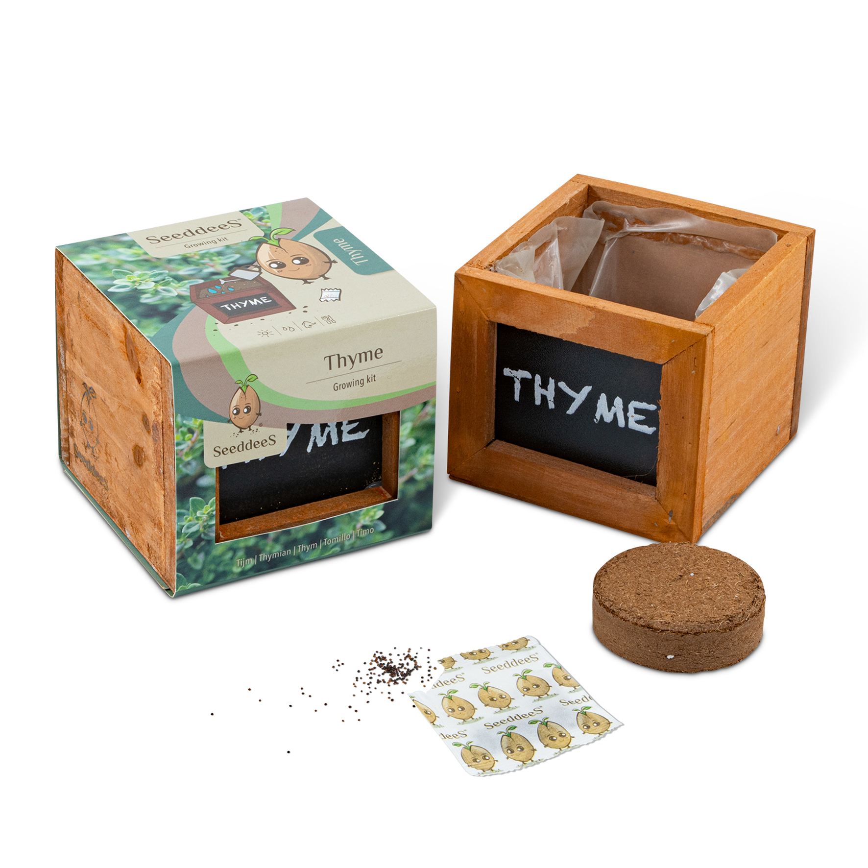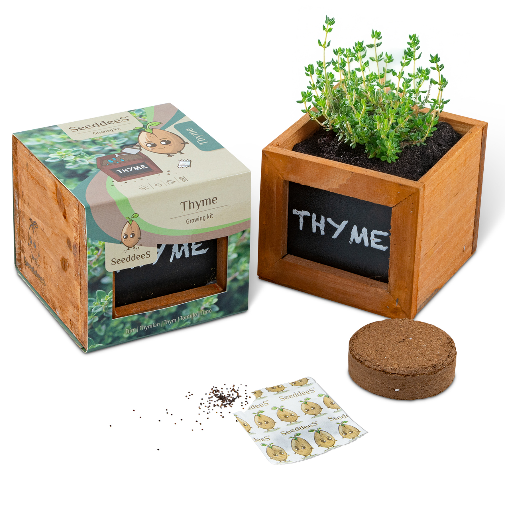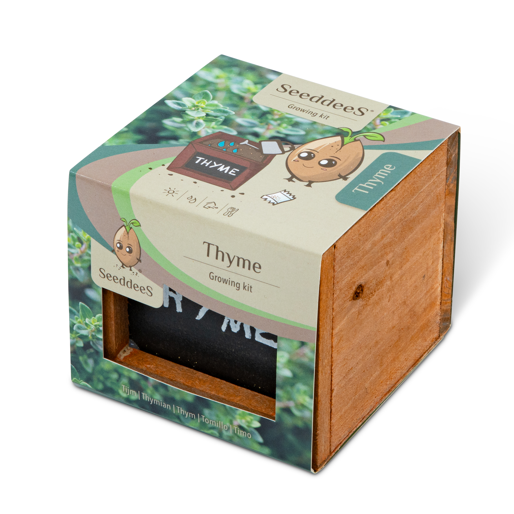 SeeddeeS kweekset houten kist vierkant - Tijm